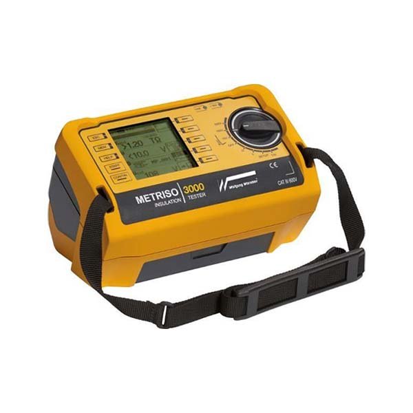Metriso 3000 - test kit 包括:数字绝缘电阻测试仪, 温湿度传感器, USB 接口, ETC软件 , 2 个圆柱形测试探针, 1个带接口线的测 试探针, 德语,英语,法语操作手册,校准证书,红色泡棉填充的便携箱。
